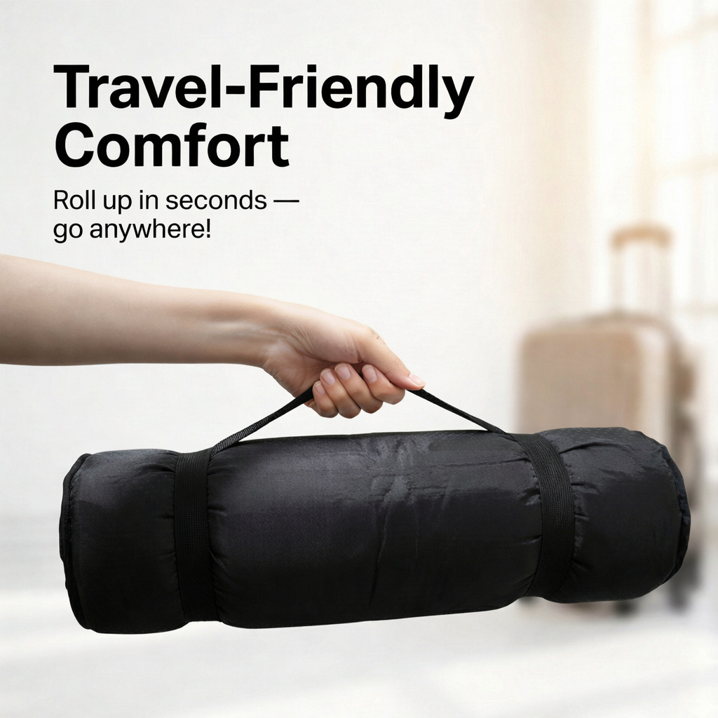 Roll it up in seconds and carry it with ease. Integrated yoga-mat style loops and a sewn-in carry strap (securely attached to the base of the mat) make transport effortless — no extra accessories to lose.